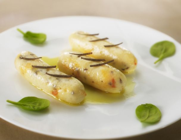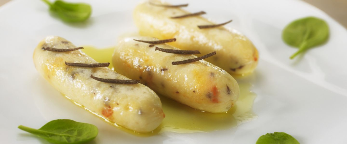 Avant de les servir, retirer le film et la ficelle puis réchauffer les boudins sans coloration, au beurre de truffe avec une pointe d'huile de truffe noire.