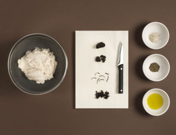 Incorporer la truffe et l'assaisonnement (huile de truffe, sel poivre) à la préparation.