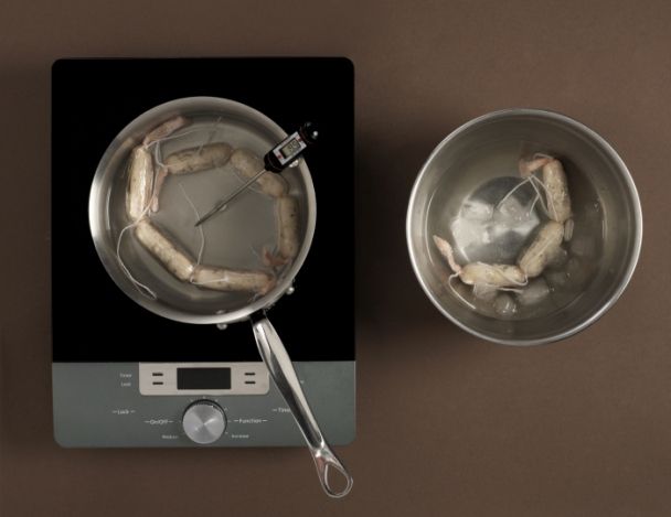 Au four vapeur: Cuire les boudins à 82°C 4min30, ou dans une casserole d'eau à 80°C pendant 4 à 5minutes.