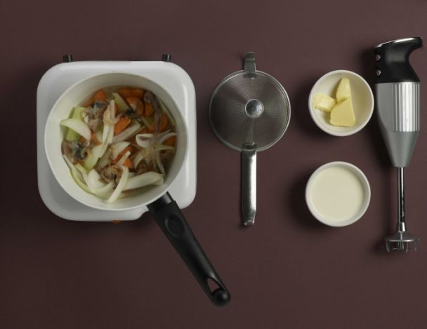 Mixer la purée de céleri avec un peu de bouillon, crème, beurre, jusqu’à obtention d’une purée lisse et onctueuse.