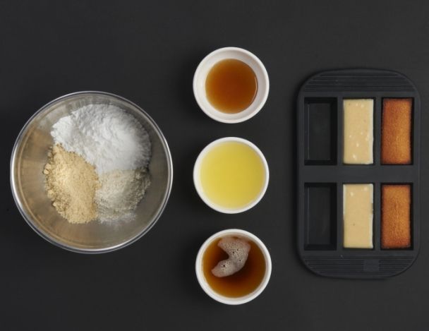 Mélanger le sucre glace avec la poudre d'amandes et la farine. Ajouter 125g de blancs d'œufs. Mélanger à nouveau. Ajouter le miel. Faire fondre le beurre pour qu'il ait une coloration noisette. Et l'incorporer à la préparation. Mouler dans des moules en silicone ou beurrer et sucrer les moules. Cuire pendant 15 minutes à 170°C.