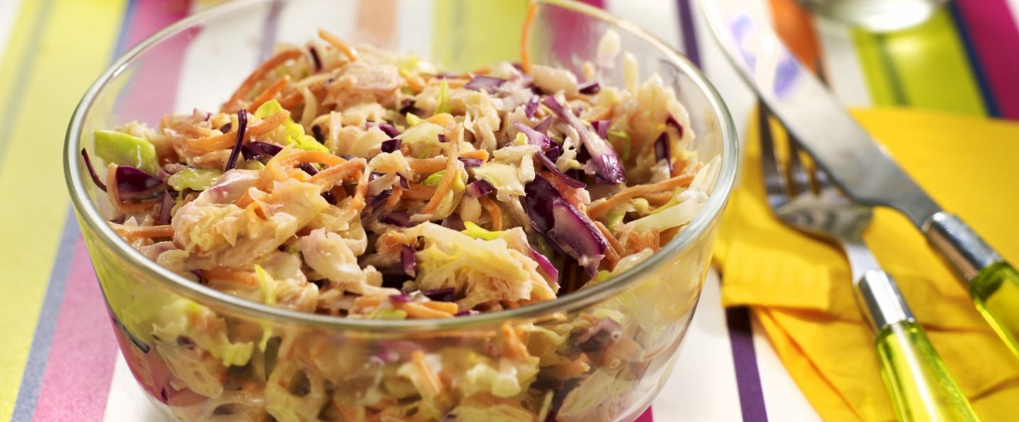 FacileLaver les choux et ôter le cœur. Couper en fines lanières. Peler la carotte et la râper finement. Éplucher la pomme et la couper en quartiers. Ôter les pépins et râper finement les quartiers. Mettre le tout dans un grand saladier.