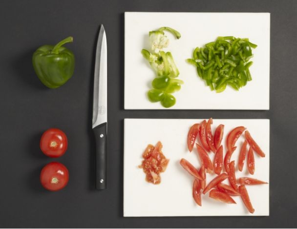 Laver 2 tomates, les couper en très fins « quartiers », les assaisonner de fleur de sel.