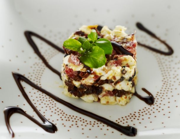 Mélanger délicatement la mozzarella, la coppa, les olives et les tomates séchées. Assaisonner de balsamique, huile d'olive, sel, poivre et piment d'Espelette. Ajouter au dernier moment le basilic ciselé.