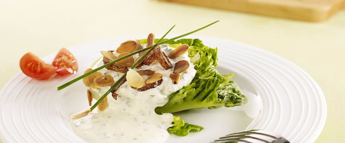 Découper les salades en deux, les rincer puis les essorer sans détacher les feuilles.
