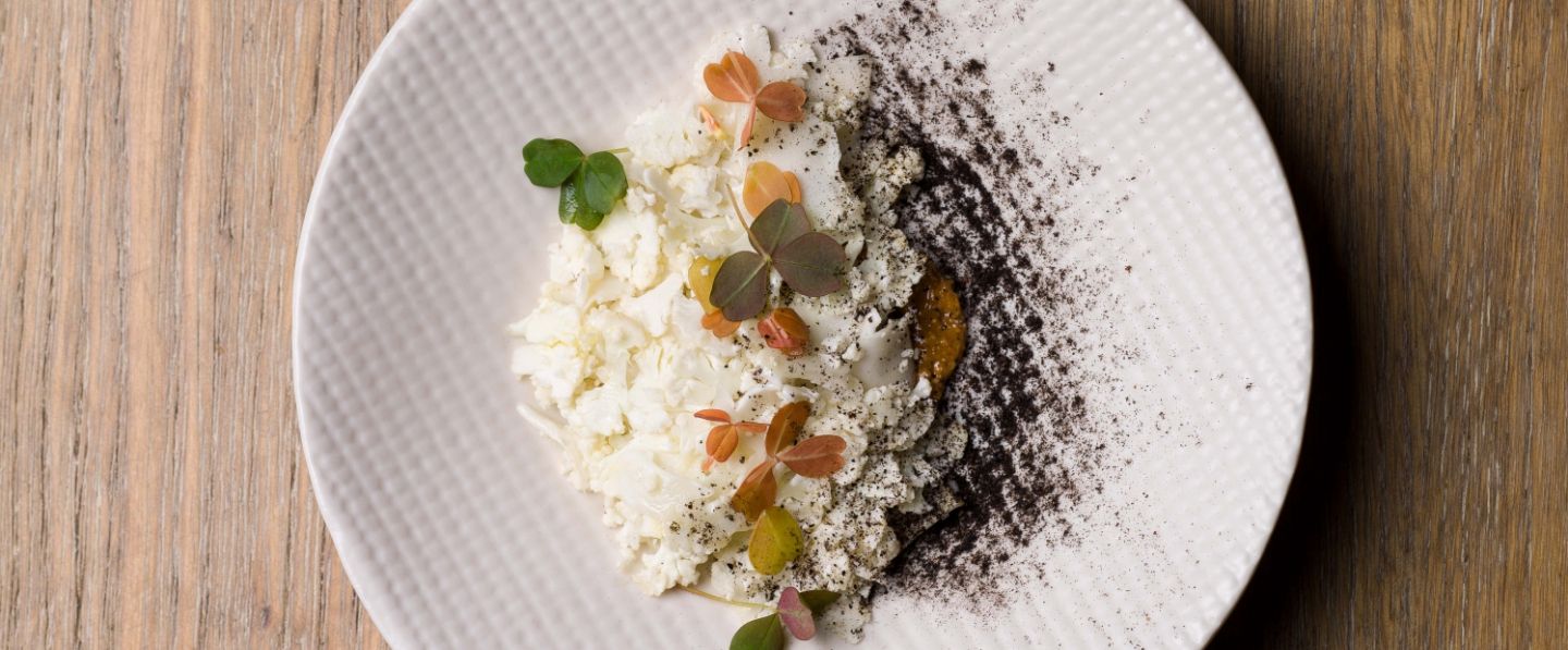 Cette délicieuse entrée de choux-fleurs et praliné de cacahuète s'équilibre autour de deux préparations : la purée de choux-fleurs, chaude, et la salade de choux-fleurs, froide, assaisonnée à l'huile d'olive... un vrai régal !