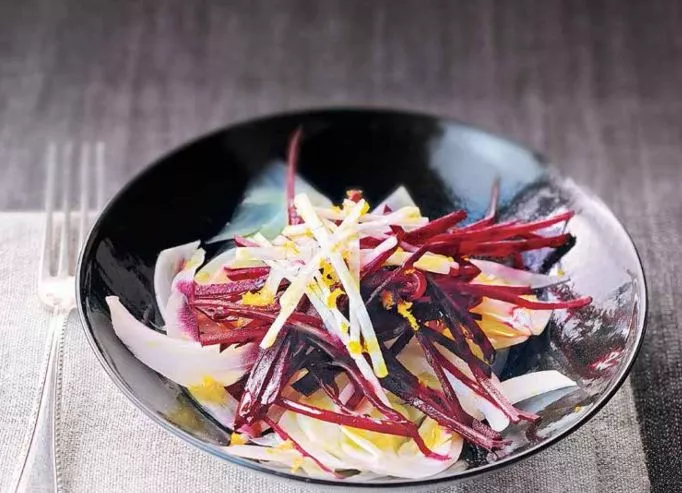 Préparez la vinaigrette en mélangeant huile d’olive, vinaigre sel et poivre.