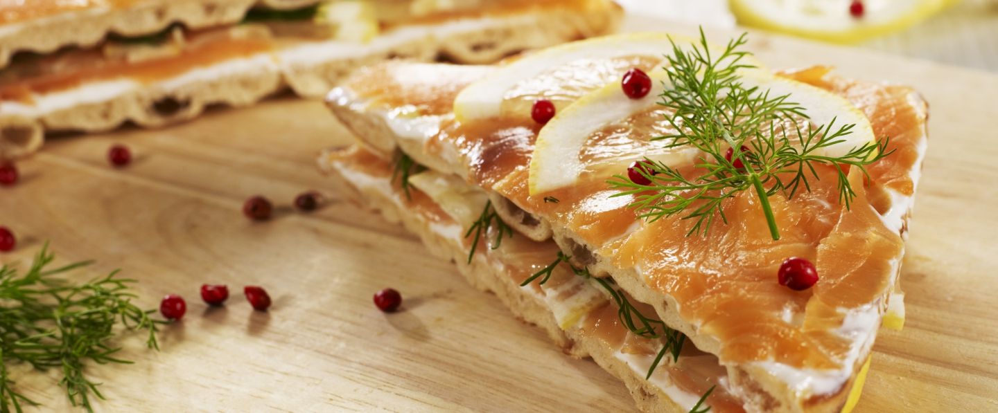Couper deux rondelles fines dans le citron et ajouter sur le pain garni. Terminer par quelques brins d'aneth.