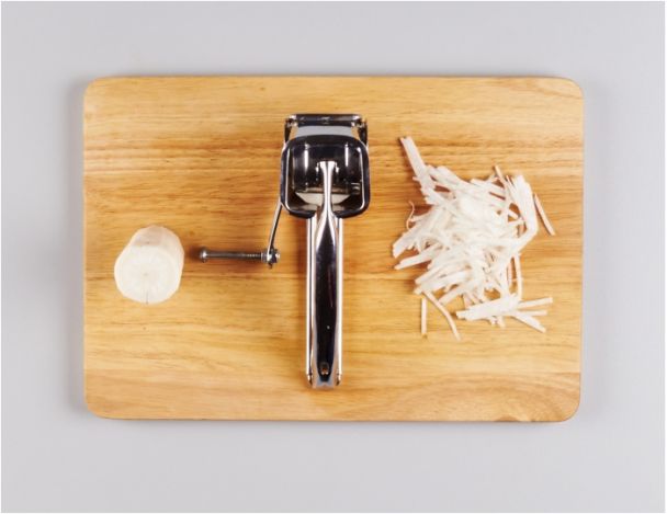 Peler le radis noir, râper-le sur une râpe à gros trous et réserver.