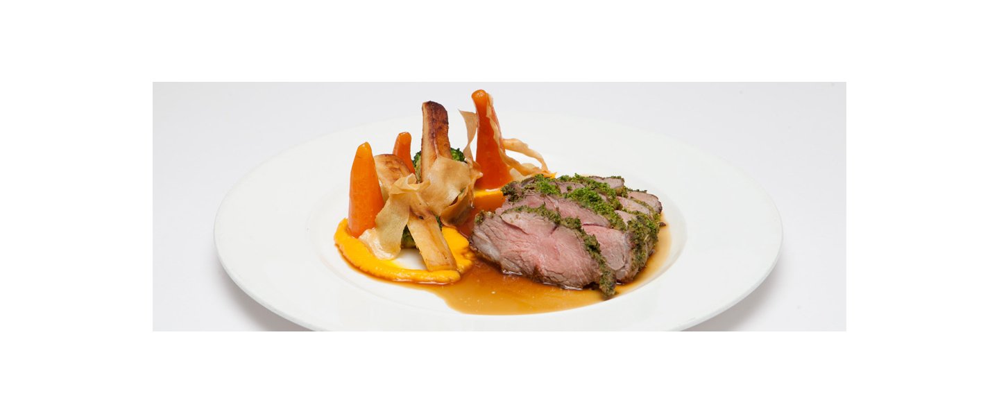 Réduisez de deux tiers, puis incorporez le beurre en fouettant, tout en rectifiant l’assaisonnement. Faites réchauffer 1 minute l’agneau au four avant de le découper en tranches de taille égale et servez avec les légumes tuberculeux cuits au four et la sauce.