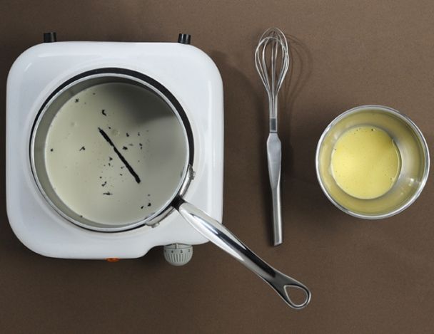 MoyenMettre la crème à bouillir avec l'alma mater ou la vanille et le lait. Dans un bol, blanchir les oeufs avec le sucre à l'aide d'un fouet, puis verser dessus les liquides bien chauds tout en mélangeant. Remettre le tout à cuire dans la casserole à 84°C. Filtrer et refroidir très vite. Turbiner la glace : verser la crème anglaise dans le bol de la sorbetière, puis laisser refroidir et foisonner. Réserver la glace dans un bol au congélateur.