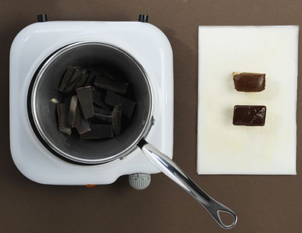 Poser le shortbread côté caramel sur le chocolat encore chaud.