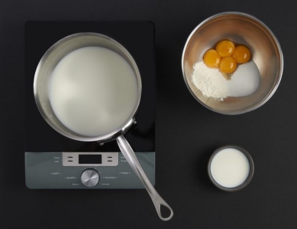 MoyenRéaliser une crème pâtissière en chauffant à ébullition le lait.