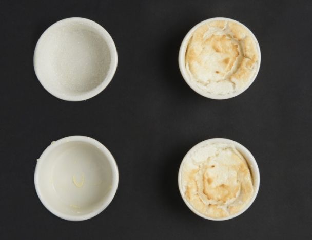 Bien chemiser les moules beurre + sucre. Remplir et lisser les moules et cuire 12 mn à 185°C.