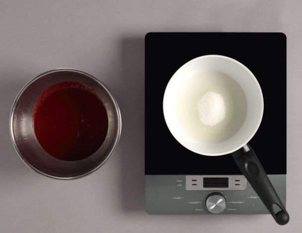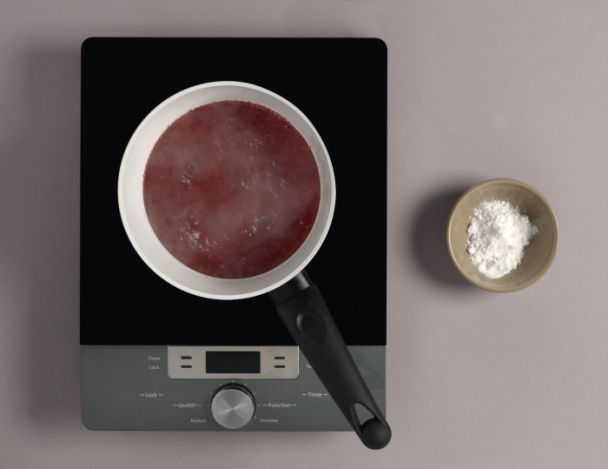 FacileDonner une ébullition au mélange purée de framboise et fécule de pommes de terre.