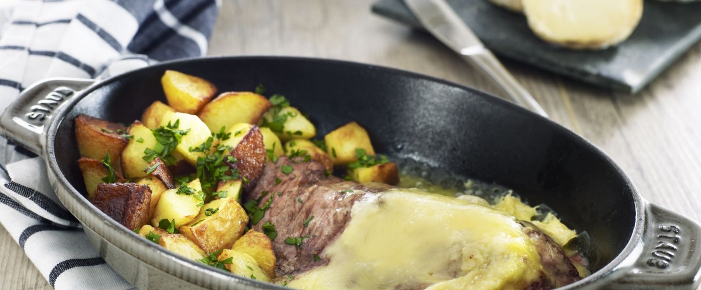 Couper les saint-marcellin en deux dans le sens de la largeur, disposer 1/2 saint-marcellin sur chacune des bavettes, passer au gril 5 minutes (le fromage doit fondre sur la viande).