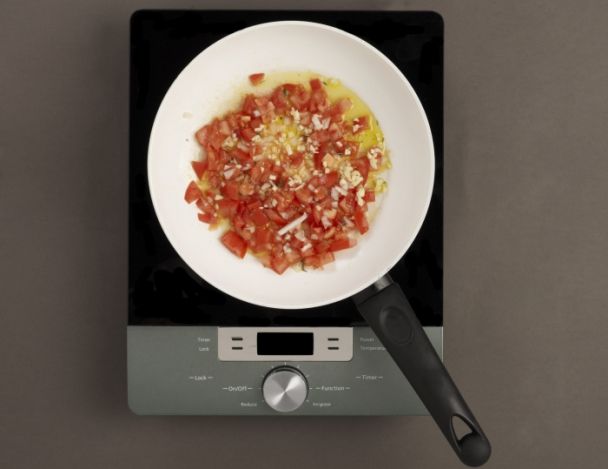 Concasser la tomate et hacher un peu d’oignon, cuire à l’huile d’olive avec ail et thym, laisser refroidir et vérifier l’assaisonnement.