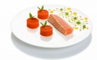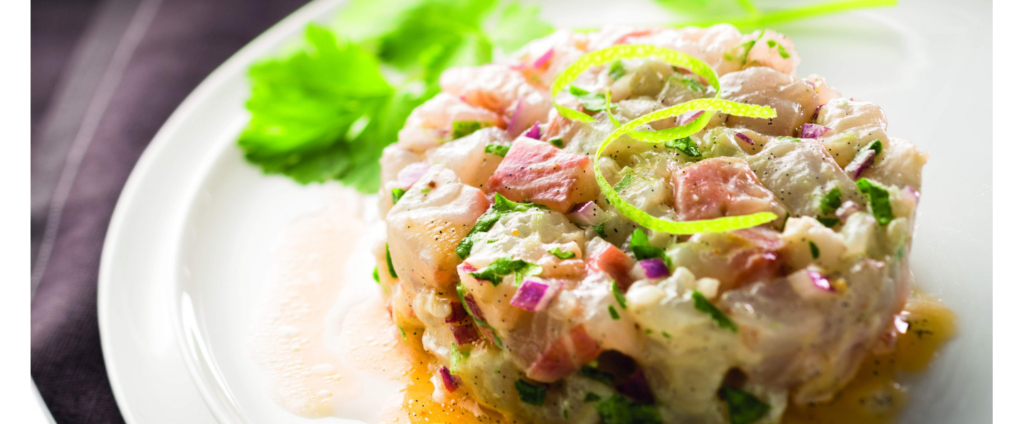 Tartare de dorade et pointe de coriandre et sa vinaigrette passion et mandarine Maille
