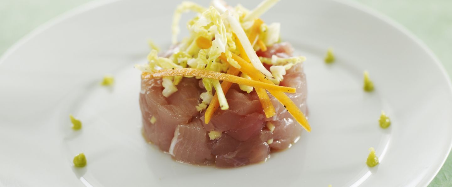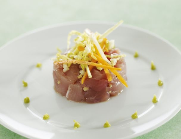 Une recette fraîche et piquante d'entrée : dégustez ce tartare de thon exotique, au gingembre et wasabi. Les amateurs de poisson seront les premiers séduits !