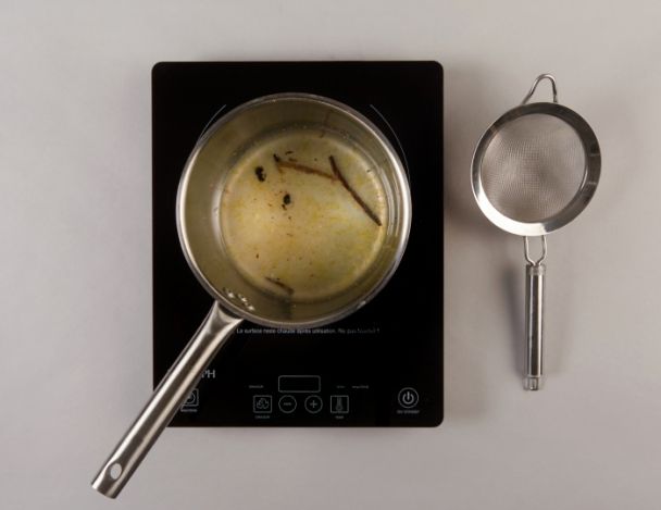 Porter à ébullition tous les ingrédients (sauf la maizena) et laisser infuser 5 minutes puis chinoiser.