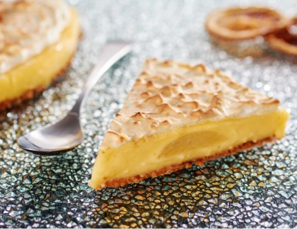 Enlever le cercle en chauffant avec la flamme d’un chalumeau ou avec les paumes de vos mains. A l’aide d’un couteau, étaler une fine couche de meringue sur le dessus de la tarte fine. Réaliser des petites piques avec une cuillère en la soulevant pour tirer la meringue. Brûler légèrement la meringue au chalumeau ou très vite sous le grill du four.