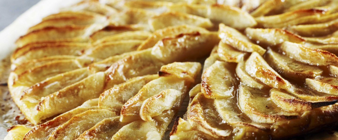 Sortir la tarte, la saupoudrer généreusement de sucre glace lorsqu'elle est encore chaude. Préchauffer le gril du four passer la tarte sous le gril 1 à 2 min juste pour caraméliser en surveillant de ne pas faire brûler.