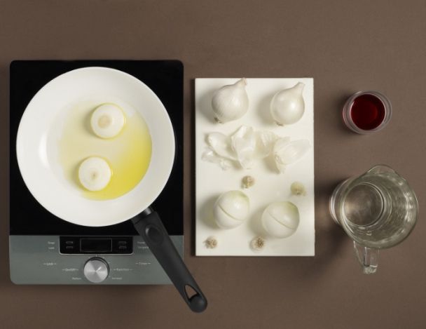 Colorer les oignons sur toutes les faces avec le caramel formé au fond de la casserole. Réserver au chaud.