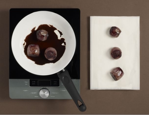 Faire cuire à vif et à découvert en les retournant fréquemment jusqu'à évaporation totale du liquide.