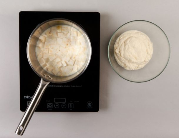Cuire le céleri rave dans le mélange eau/lait puis mixer et incorporer la crème montée et réserver.
