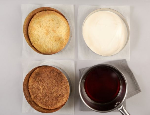 Couper légèrement le dessus du biscuit afin qu’il soit plat puis le repositionner dans le moule à génoise. Imbiber généreusement le biscuit de sirop de café puis couler ensuite la crème tiramisu jusqu’en haut du moule.