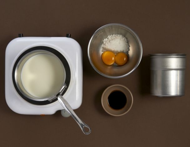Faire bouillir le lait et la crème. Mélanger les jaunes d’œuf et le sucre. Délayer avec le liquide bouillant. Cuire une anglaise. Terminer avec l’extrait de café, passer en sorbetière et réserver au congélateur.