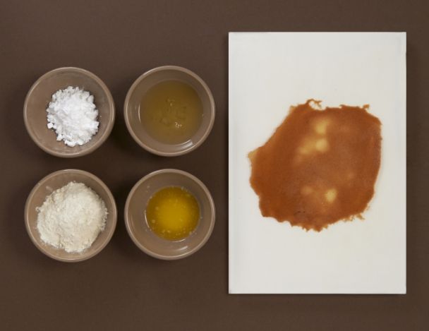 Mélanger le tout ensemble à l’aide d’un fouet. Laisser reposer la pâte au frigo pendant 1 heure. Étaler sur silpat d’une épaisseur de 2 à 3 mm d’épaisseur la base de la tuile. Enfourner à 170°C pendant 7 à 9 minutes (coloration dorée). À la sortie du four retourner la tuile sur la table et retirer le silpat.