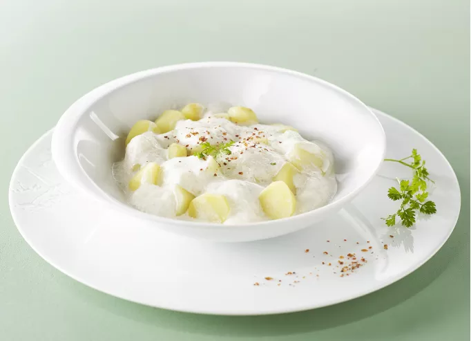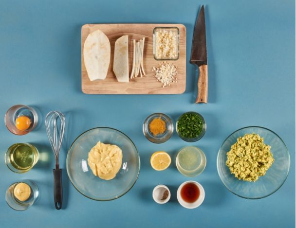 MoyenTailler très finement le céleri en brunoise. Préparer la mayonnaise maison en mélangeant le jaune d'œuf, la moutarde, le vinaigre et l'huile dans un cul de poule. Puis ajouter la brunoise de céleri avec le reste des ingrédients et mélanger. Réserver au frais.