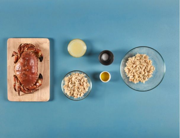 Incorporer le jus de yuzu à la chair de tourteau, saler à votre convenance, ajouter une pointe d'huile d'olive. Réserver au frais