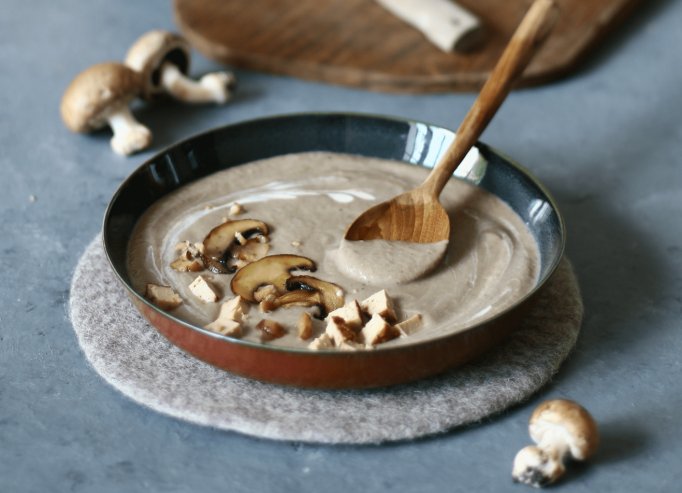 Retirer la branche de thym. Mixer le velouté. Ajouter la crème. Mixer.