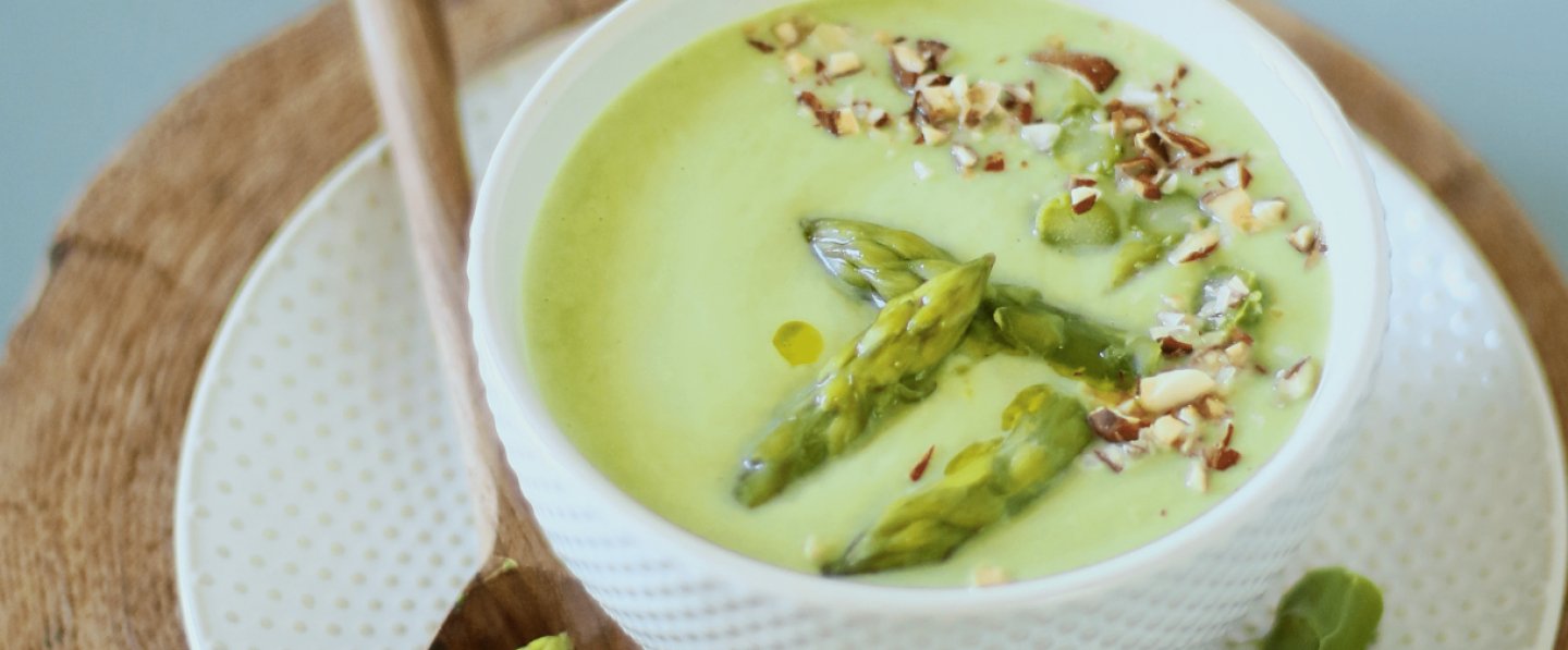 Servir bien chaud, décoré des pointes d’asperge.