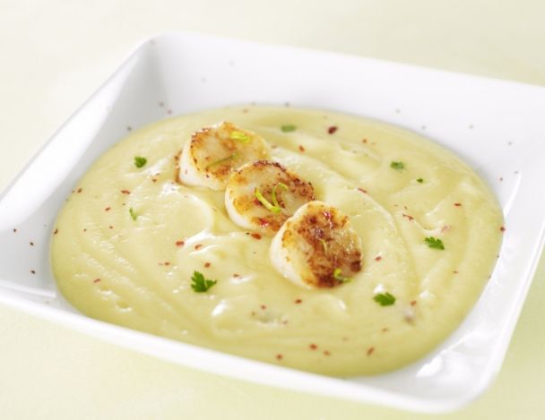 Un velouté qui nous réclame un vin blanc onctueux mais non sucré. Les viogniers de Condrieu devraient être de bons compagnons tout comme les grands Meursault.