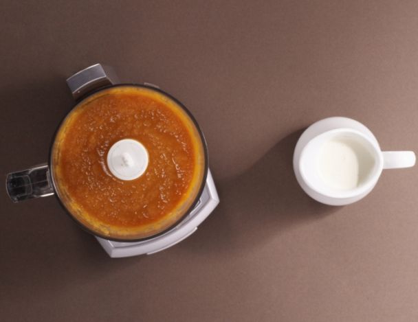 Une fois le potiron cuit, mixer ce dernier en y ajoutant la crème. Vérifier l'assaisonnement.