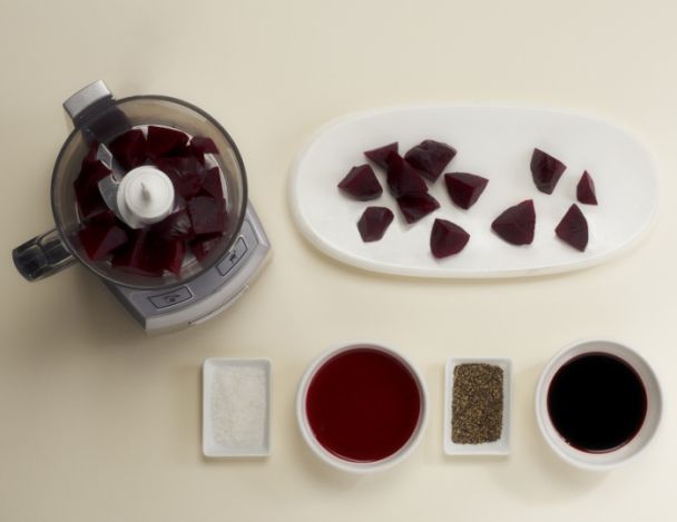 FacileEplucher la betterave rouge puis la couper en morceaux grossiers.