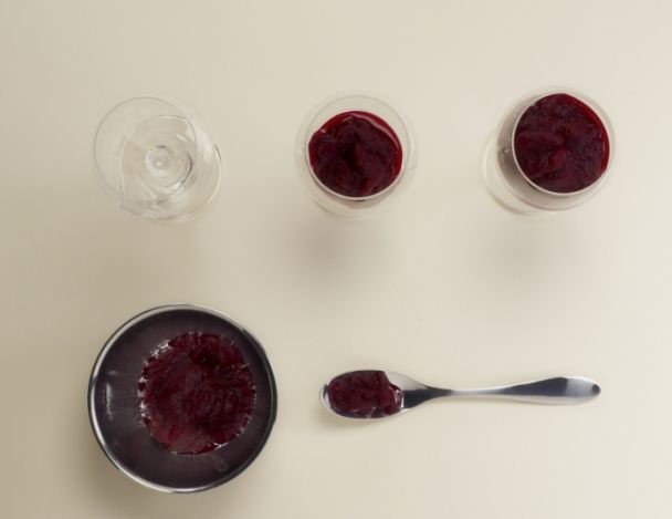 Verser dans des verres à vin, la préparation. Réserver au frais.