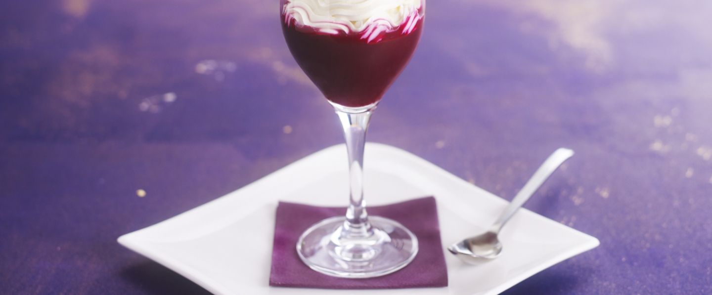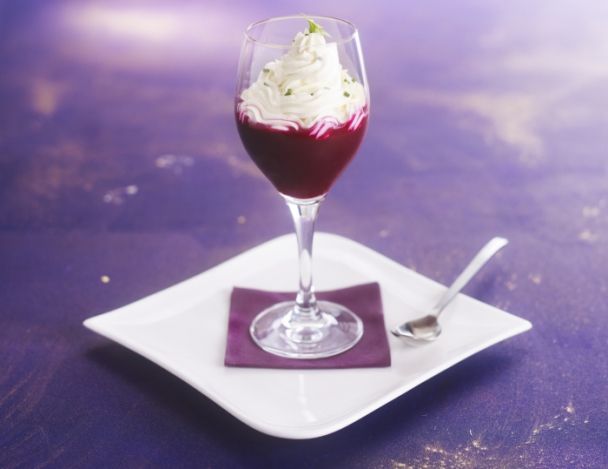 Au moment de servir, mettre la mousse de charolais sur la purée de betterave dans les verres à vin.