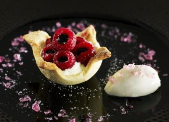 Tartelette Framboise Poivron Rouge, Glace au Chèvre