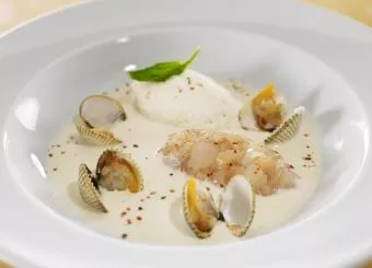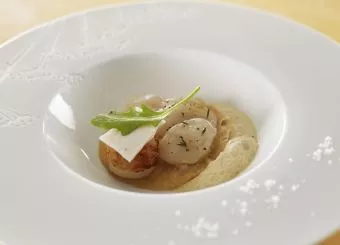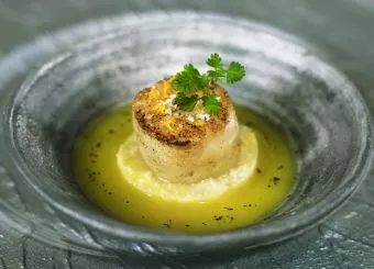 Velouté de panais au curcuma frais Saint-Jacques dorées au beurre