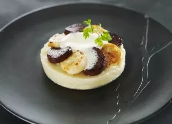 Noix de Saint-Jacques, compote de cœurs d’artichauts, beurre blanc