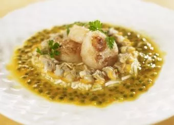 Velouté de panais au curcuma frais Saint-Jacques dorées au beurre