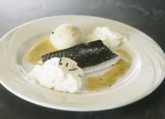 Blanc de turbot sauvage, crème et copeaux de chou-fleur