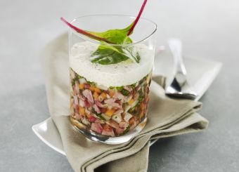 Tartare de thon à la thaï, salade de légumes croquants au wasabi