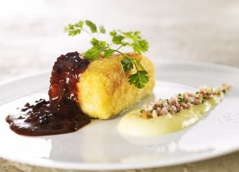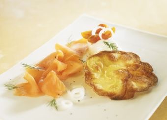 Saumon en croûte de pomme de terre, pied de cochon , purée de panais