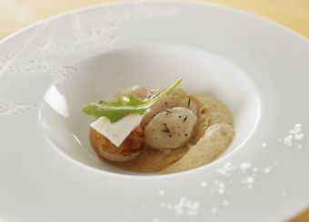 Tatin de coquilles Saint Jacques et pommes, bouillon pomme - châtaigne