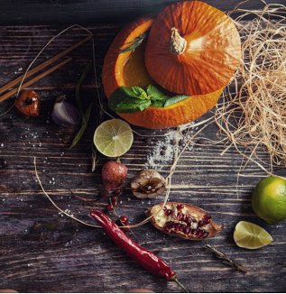 Velouté de potiron, glace fromage de chèvre et crumble aux châtaignes